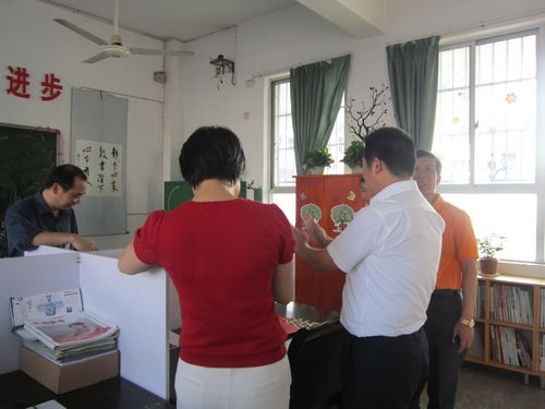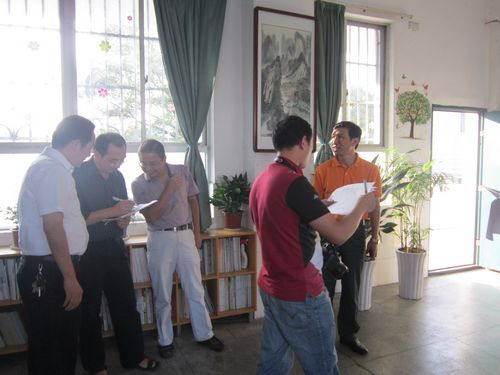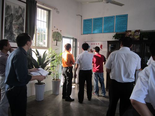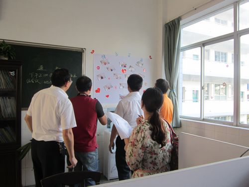 今天第八、九节课,学校办公室文化建设的评委们开始对全校十五个教师办公室的文化建设情况进行评比。在高三班主任办公室,评委们对办公室的文化建设赞不绝口:有“快乐伊家”的室名,有“快乐家族”的特色窗口,有满室绿色植物的环保理念,有“静下心来教书、潜下以来育人”的文化氛围,还有办公室的老师们都身着校服迎接检查,有罗志强老师进行办公室布置的解说。。。。。。