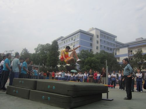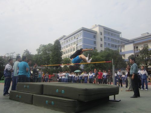今天下午两点男子跳高比赛在操场上进行。跳高,是奥运会田赛比赛项目。据了解:跳高起源于古代人类在生活和劳动中越过垂直障碍的活动。现代跳高始于欧洲。18世纪末苏格兰已有跳高比赛,19世纪60年代开始流行于欧美国家。1827年9月26日在英国圣罗兰博德尔俱乐部举行的首届职业田径比赛中,威尔逊(Adam Wilson)屈膝团身跳越1.575米,这是第一个有记载的世界跳高成绩。比赛时,运动员必须用单脚起跳,可以在规定的任一起跳高度上试跳,但第一高度只有3次试跳机会。在我们学校第五届秋季运动会上,高三245班于浩男同学一举获得男子跳高第一名的好成绩。