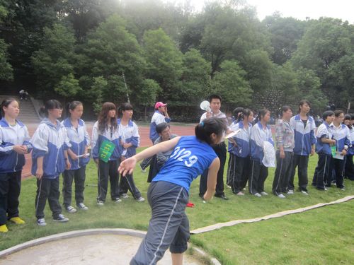 铅球是世界田径赛场上的传统项目。在远古时期,面对严酷的自然环境和水平原始低下的生产力,人类要在地球上生存延续下去,不仅要跑得快,或迅速跳越障碍去追捕各种动物,或逃避猛兽的伤害,而且还要学会利用工具把石头、梭标、鱼叉等投得又远又准,以便击中猎物而获得食物。奴隶制时期,随着人类的进化、社会的进步,掷重石已成为重要的作战方法。为了提高各自的战斗力,掷重石就被当作重要训练手段。现代推铅球则始于14世纪40年代欧洲炮兵闲暇期间推掷炮弹的游戏和比赛,后逐渐形成体育运动项目。男、女铅球分别于1896年和1948年被列为奥运会比赛项目。今天下午四点,在高三女子铅球比赛中,249班的白雨凡取得头名。