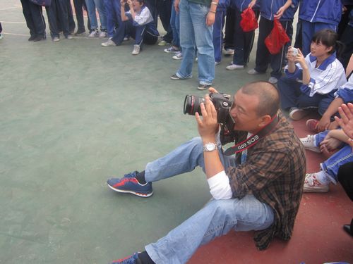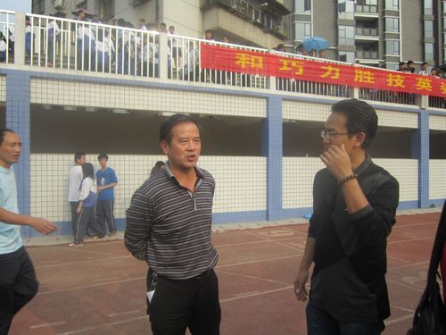 李国柱校长和学生一起观赛