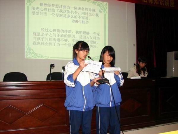 株洲市第十八中学首届校园心理剧大赛取得了突出的成绩。一等奖《你也是闪亮的星星》在学校“快乐德育”特色项目展示会上获得专家高度肯定,并在元旦文艺汇演获一等奖。同学们通过参加自主排演的心育活动,增强了个人能力,提升了心理素质,展现了自我,获得了更快乐的发展。学校决定今年继续举办第二届校园心理剧大赛。