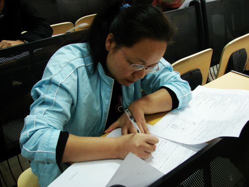 11月3日上午,在周末安静的校园里出现了一些年轻的面孔,这些青年教师来干什么?哦,他们是来参加青年教师素质大赛理论考试的。瞧,他们一个个信心满满,胸有成竹。