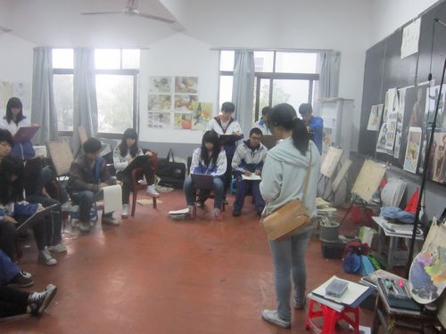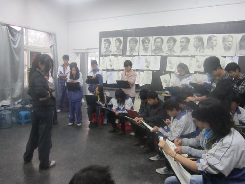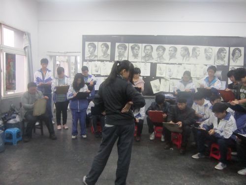 我校是省首批美术特色学校,美术培训就在校内进行,本届美术生一百五十名,分四个班(三个文科班和一个理科班)。每班都配备一名专业班主任和一名助教,另外,原文化班的班主任也每天到班及时了解学生的动态,使美术培训紧张有序进行。目前美术生的状态很好,信心十足,让我们共同期待联考的到来。