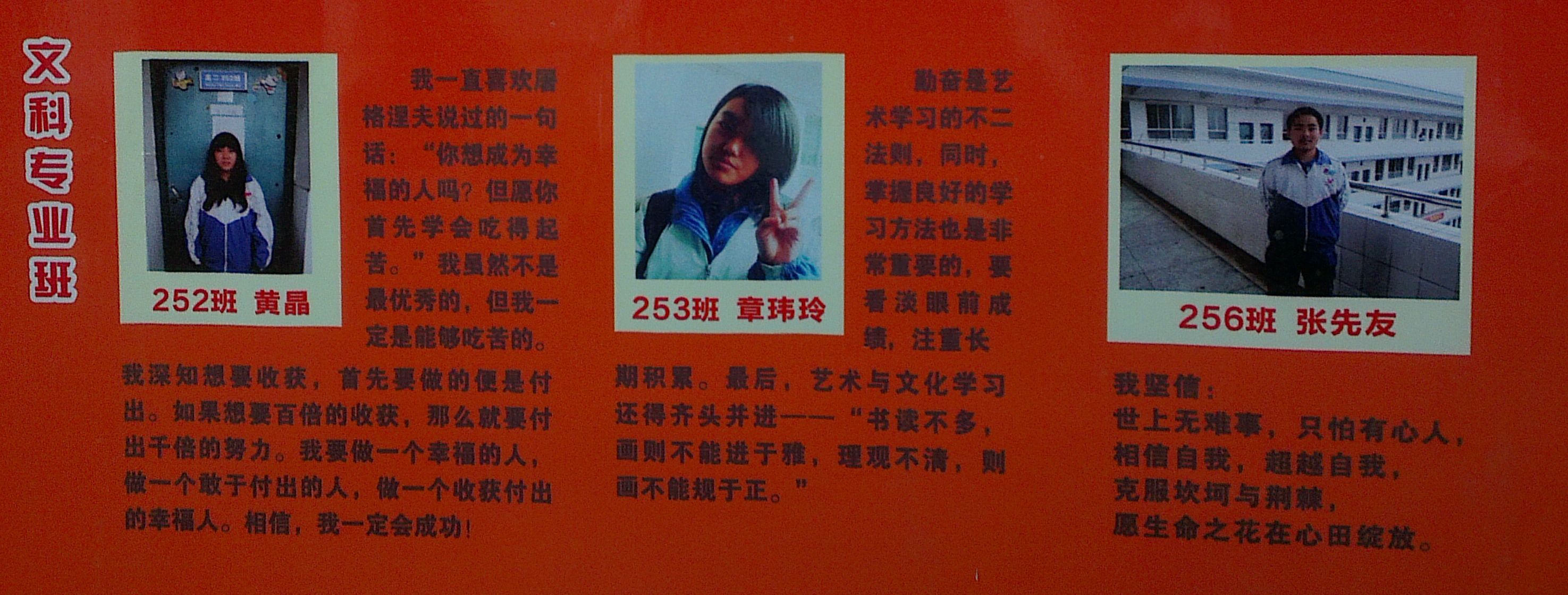 文科专业班3名:252黄晶、253章玮玲、256-张先友