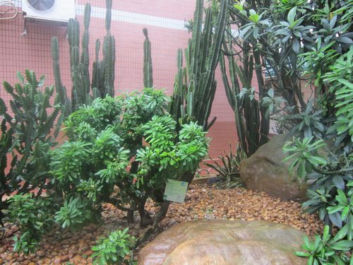 二是建设植物园的可能性。在广铁一中这片寸土寸金的地方,他们充分利用了我们平时教学楼边的花坛建设植物园,栽种民适合他们当地环境但与生活环境有区别的植物,长势繁茂,并标有各类植物的学名及生活习性。而在省实验中学,他们利用了实验楼后面的空地,建立了一个玻璃温室,室内室外有不同代表性的植物生存。我想我们学校实验楼后面也有一块空地,那里是堆放垃圾的地方,土壤肥沃,如果稍加改造,移走垃圾池,由我们九位生物教师来打点,设计,即使没有玻璃温室,我们也能建造出一个小小的植物园。出资不多,但是也是展现我们学科特点的一个角落。