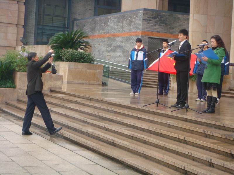 最令人感动的是,五十多岁的阎书记从学生上车开始到活动结束,一直在协助学生发展中心和年级组的老师们安排活动,忙前忙后,并且在讲话之余,在寒风中为活动拍照。