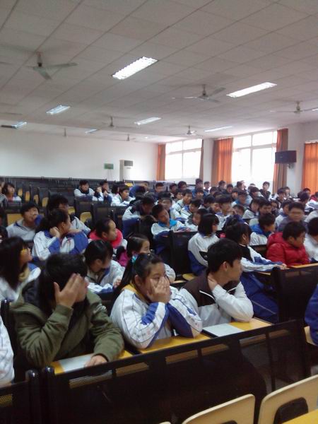 12月13号下午第八节课,高一一百五十名学生集中在多媒体教室,召开补考动员大会。