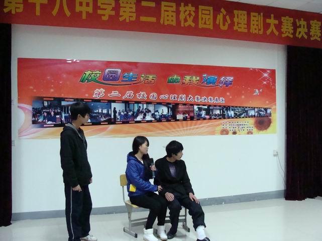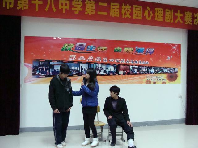 为优化心理健康教育,促进我校学生的心理健康事业的发展,株洲市十八中学于12月21日下午举行了第二届校园心理剧大赛决赛。在这次决赛之前,先分班进行了初赛和复赛,最后选出六支代表队进行决赛暨汇报演出,这次比赛以“校园生活,由我做主”为主题,学生用真心演绎身边的故事,用感动传递心灵的力量。