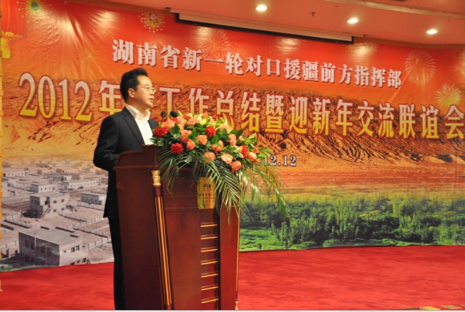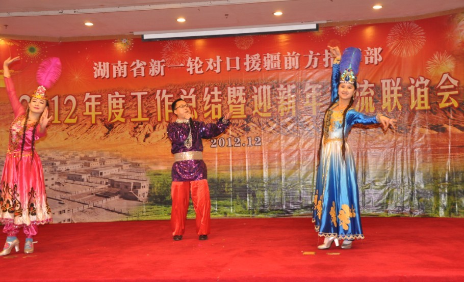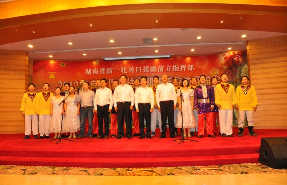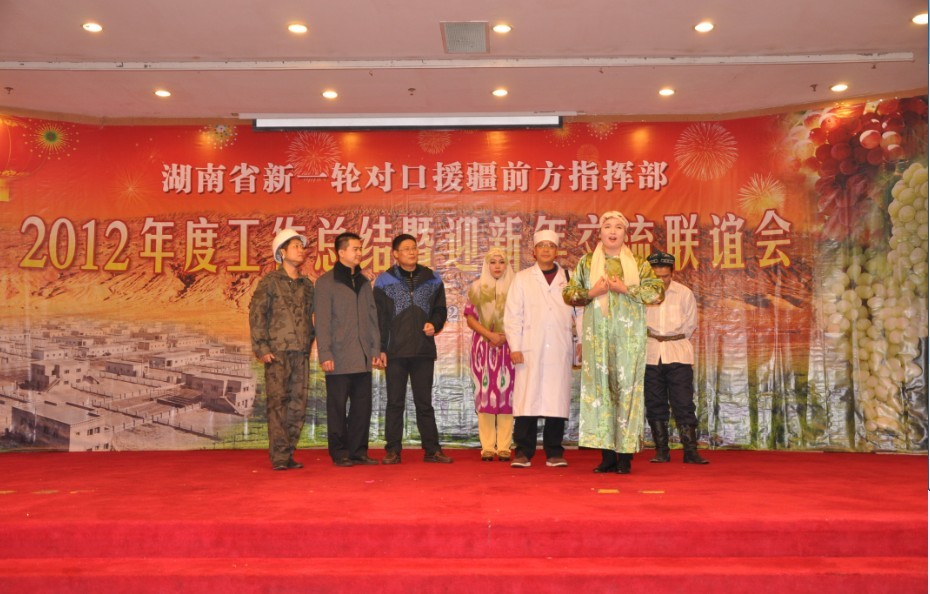 2012年12月22日下午,湖南第六轮对口援疆工作总结暨迎新年交流联谊会在吐鲁番“吐哈石油大酒店”隆重举行,会议由援疆工作队领导小组副组长牛顺生主持,出席会议的有援疆工作队的所有其他领导,全体援疆干部,及部分援疆志愿者。