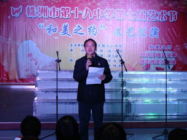 在开幕式上李国柱校长在致辞中指出本届艺术节是学校进一步推动新课改,深化艺术教学改革、繁荣校园文化的重要举措。并预祝我校本次艺术节圆满成功。