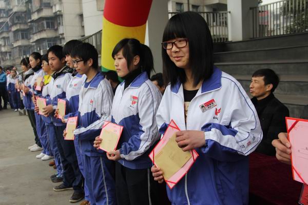 典礼最后杨电波书记宣读了2012年下学期优秀班主任、先进班集体的表彰决定。现场,在礼仪的引导下,全体校领导为三好标兵颁奖。据悉,还有24位同学获得了2000或1000元的优秀奖学金,让台下的同学艳羡不已,当然更多了一份前行的动力。