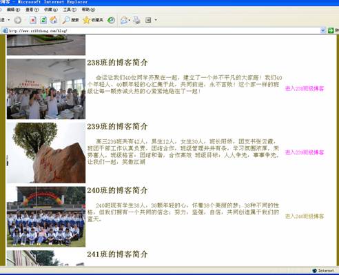 班级博客的开启,不但给同学们提供了一个绿色的网络环境,也让老师们对素质教育有了更深的感悟。246班班主任彭老师更是将高考前的班级生活的点点滴滴在博客进行分享……