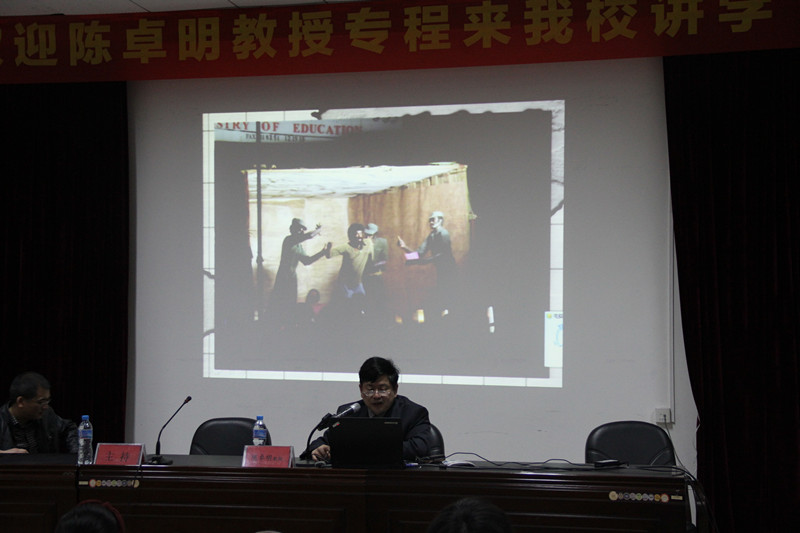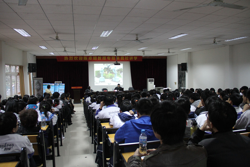 4月20日上午,忽然而至的“倒春寒”使得整个株洲都寒气逼人,而与室外的低温相比,株洲市第十八中学多媒体教室内却灯火通明,热闹非凡。国家级雕塑大师、文化部2009年特派援非学者陈卓明教授受十八中之邀为该校高一年级的美术特长生及其家长们做了一场别开生面且趣意盎然的讲座,在轻松热烈的氛围中带领学生、家长、老师们一同展开了一场愉悦的非洲艺术之旅。