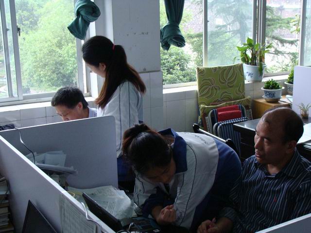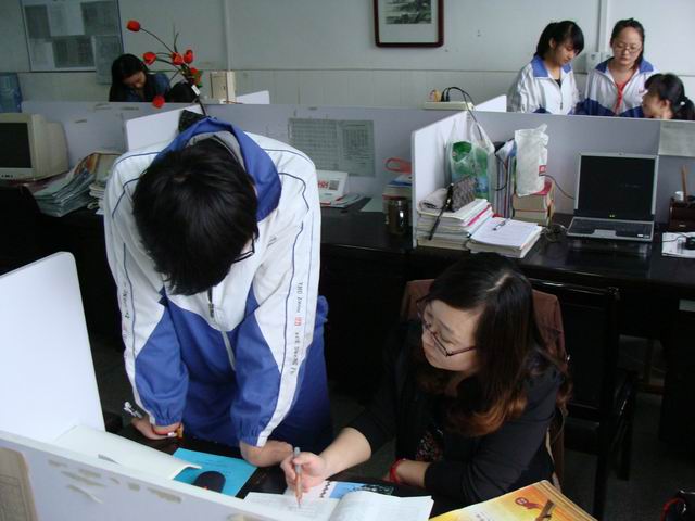 在办公室到处可见学生求知的场景