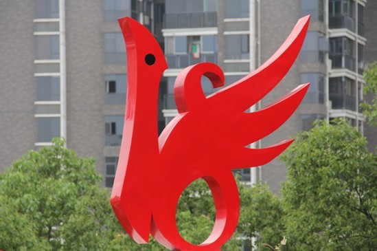 株洲市第十八中学在正对巍峨的校门树立校徽雕像,如大鹏“振翅高飞,莫之夭遏”。大有“大鹏高飞,一举千里。羽翼已就,横绝四海”之势。