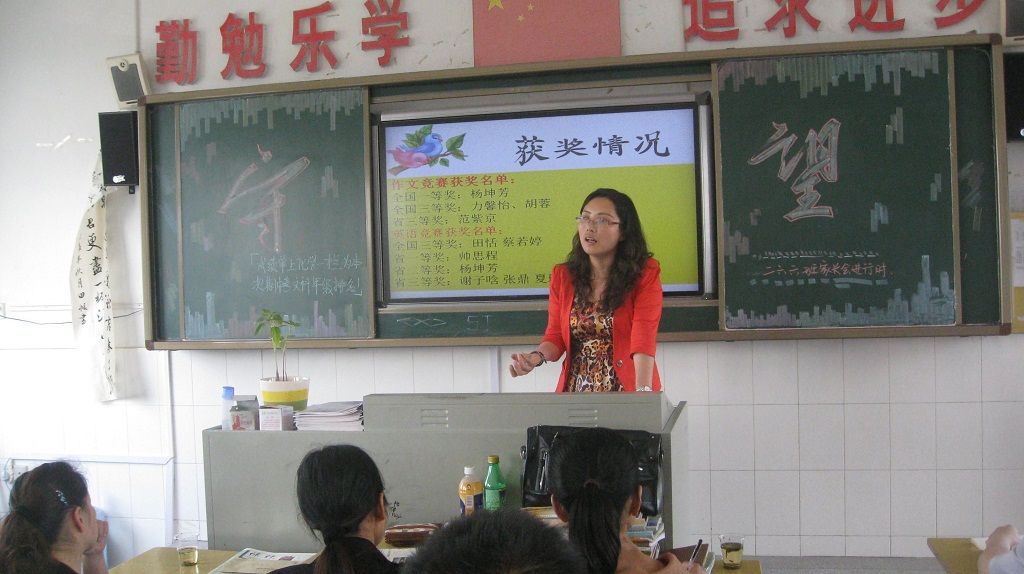 266班班主任孙老师在宣读本班的获奖情况,