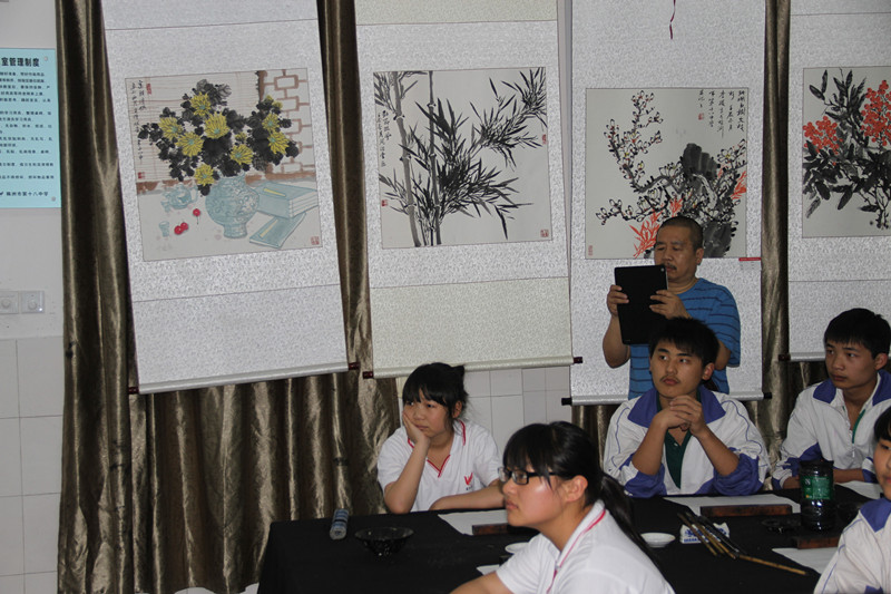 尹教授还来到美术楼,参观十八中专业生培训场所。对于十八中将高考培训校本化的作法给予了高度评价,他说:这样的方式比北漂、沙漂(长沙)更实际更有效,在学校内将资源进行了充分发挥。