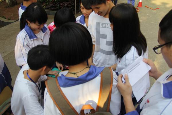 5月22日下午4点10-6点,株洲市十八中教学楼前坪热闹非凡,欢笑声不断。初听,1,2,1,2,那是四五个好朋友在玩两人三足的游戏,同学们自己担任了活动的组织者,策划游戏,设计路障,计时统分,分发奖品;近瞧,聚集人最多的地方,排着长队翘首以盼的,拿着纸条念念有词的,答对了欢呼雀跃的,中奖了喜上眉梢的,十八中心理知识竞答年年吸引着热情的同学们;远望,教学楼大厅,经过系列培训的阳光心灵使者们有模有样的为前来做测验的同学分析,“你是理智型情绪的人,遇到事情你比较冷静”“你的人际关系状况整体不错”同学们用积极肯定的话语细致的分析,说得参与的同学很是信服;细观,专家心理咨询区,同学们与专家倾心交谈,有的直言烦恼,有的迂回曲折,有的眼眶红红,时而细细聆听,时而静静思考,最终愁云渐散,会心而笑,舒心离开。专家们神态各异,但始终不乏耐心倾听,温暖陪伴,用心引导。还有教学楼前坪中间的心理加油站,作为此次新增项目,包含能量卡传递,人生鼓励的话语征集,心理励志图书漂流等等小活动,温暖有爱。