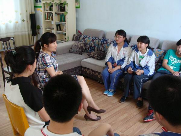 沁心阁内高考咨询专家邱莉老师为孩子们进行考前调适