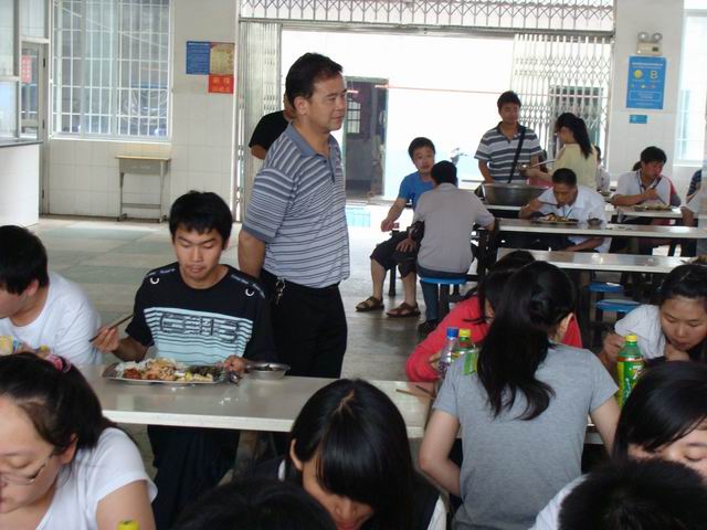 2013届高考正在紧张而有序地进行着,我校总务科高度重视饮食卫生,把各项工作做细做精,确保不出现任何饮食卫生问题,为高三师生做好后勤服务工作。今年我校高三考生在四中参加高考,上午考试结束后大约12点半才能乘车返校,下午两点从学校出发乘车赶往四中,要确保考生能到达四中,中午时间比较紧张,为了能赢得更多的时间让学生休息,总务科王承毕副科长亲自带领食堂工作人员为考生准备好一份份美味可口的饭菜等待考生的归来。李国柱校长也亲自到食堂督促指导工作,要求以高质量的后勤服务,为考生保驾护航。