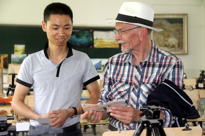 6月25日,气温居高不下。与此相呼应的是株洲市十八中校园里热烈的气氛。这天上午8点30,来自意大利那不勒斯艺术学院的FABIO DONATO教授和FRACO MARINO教授在工作人员的陪同下,对十八中进行了首次访问,两校就各自在美术专业方面的办学宗旨及方式进行了深入交流。fabio教授和marino教授还在随后的学生见面会上对十八中美术专业生的作品进行了面对面的点评。
