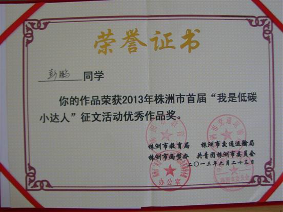 2013年6月25日,株洲首届“我是低碳小达人”主题活动颁奖典礼隆重举行。主办单位在历时一个月的评选活动中,从市区各中小学幼儿园评出51位“低碳小达人”与49位“我是低碳小达人”征文优秀作品获奖者。株洲市第十八中学王嘉诚、李胤璇两同学荣获“低碳小达人”称号,曾佳慧、彭鹏两同学获得“我是低碳小达人”征文优秀作品奖。