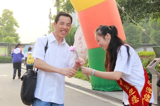 校长接过鲜花“只把春来报”