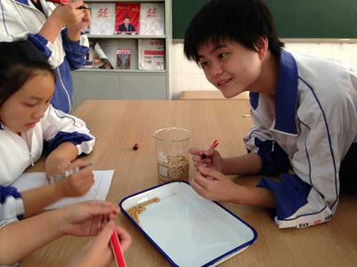 教材对标志重捕法仅有文字性描述,在平时的教学中发现学生很难理解为什么该方法可以用来计算种群的数量,怀疑其准确性和真实性,通过周志雄老师的巧妙设计,仅用一杯黄豆,就设计了一个简单、易操作的实验,让学生学会通过模拟实验来体会和运用标志重捕法,通过该模拟实践活动,理论得到诠释的同时,学生还领悟了科学方法,培养了合作探究的学习精神。
