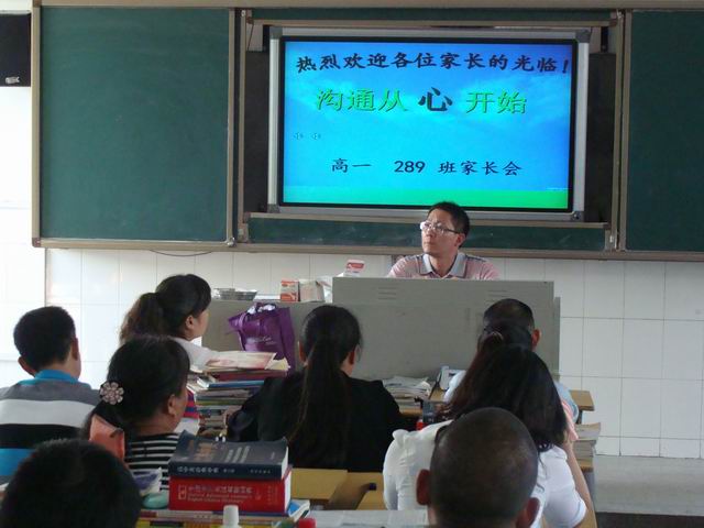 学校领导、级部领导和全体班主任都十分重视,精心准备各项工作。会议由两部分组成。第一部分是由学校组织广播会议,首先由级部长张建湘讲话,向家长介绍了开学一个多月来高一级部的工作情况和学生的学习状态,然后教务科文新岳讲话,就学校的基本情况进行了介绍,针对高一学生所面临的具体情况和高中学习的特点对家长进行了指导。会议的第二部分为班级会议, 主要由各班主任在本班教室举行,首先由各班班主任做了热情而生动的讲话,代表学校感谢家长一直以来对学校的大力支持,然后向全体家长介绍了目前学校的情况、近期的发展和以后的前景,并向家长们提出了一些教育孩子的建议,希望家长加强与学校的沟通、加强与子女的沟通,为共同教育好孩子而努力。随后,介绍了学生在校学习、生活情况,并就如何正确引导孩子培养良好的学习、行为习惯以及如何注意安全等与家长进行了互动交流。同时,老师们认真听取了家长对学校工作提出的建议和要求,并做了详细的记录。与会的家长们也纷纷发言,积极交流家教经验,并表达了自己将一如既往地支持学校工作,密切配合教师共同教育孩子的愿望。最后,家长会在老师和家长们的和谐交流中圆满结束。