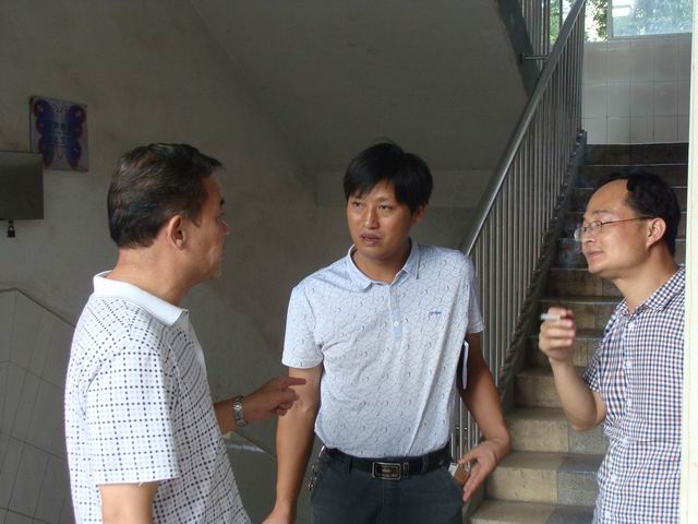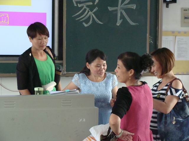 家长会后李翠英老师继续与个别家长交流