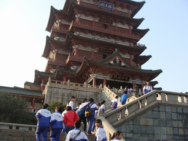 经过五个多小时的长途跋涉,我们终于来到江西南昌,大家吃过中饭,便来到江南三大名楼之一滕王阁,滕王阁是中国古代建筑艺术独特风格和辉煌成就的杰出代表,象征着中国五千年积淀的文化、艺术和传统。同学们从中感受我国古代文化的博大精深。