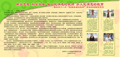 在刚刚结束的株洲市2013年师德师风建设论文评选中,市十八中赵宏俊、朱立娟老师荣获一等奖,周丽、龙薇、宋桂香老师荣获二等奖。