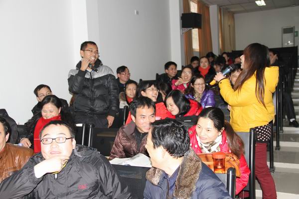 在几位老师的主体发言中穿插了互动发言和议题大讨论。在何志文老师分享完后,主持人匡金鹏老师及时总结,并现场采访了吴好勤、唐玲两位老师,她们从班级管理分享了具体的案例和做法,美女主持肖艳向匡帅哥发难,请他现场谈谈班委会建设。在德育活动探讨环节,贾小红老师、刘雪枚老师、彭咏莲老师分享了自己如何充分利用学校运动会、心理剧大赛,家长会等各种特色活动,如何智慧引领,尤其是彭咏莲老师,展示了家长会上的视频,家长会组织过程及亮点,班级合唱排练成果,“彭老师做事有自己的风味,272班的大合唱就是彭老师的菜”,我们能感受到彭老师的自信与欣慰,也感动于她的用心与执着。