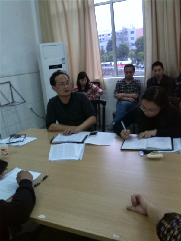 “我们英语组是清一色的女老师,但是我们现在都变成女汉子啦,”英语组的罗婷老师不无调侃的说到她们的辛勤付出,首先由数物地英生五个科目的备课组长发言,从总结前段教学工作,分析本次月考成绩、说明后阶段的应对措施三个方面做简明扼要的阐述。孙部长强调应对措施要落实到人,把重心放在课堂,个辅应该是解决课堂未解决的问题,老师应该调整方案,备课组长也要充分发挥统筹协调的能力。