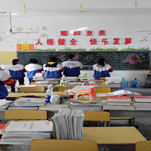 团委干部组织认真评比黑板报