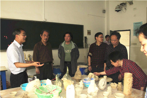 2014年四月十八日下午两点半,民盟十八中支部大会暨美术特色学校文化建设恳谈会在十八中小会议室胜利召开,与会的领导有市教育局党委书记、局长钟艳,市人大副主任、省政协委员、民盟株洲市委主委鲁立彬,市委专职副主委、政协委员尹剑锋,王国军等等,特邀民盟成员市政协委员、书协主席、书法家汤树林、市书画院副院长、专职书画家、副研究员吴楚龙、省工艺美术大师、省陶瓷研究所高级工艺美术师刘劲松,成员有十八中全体盟员。会议的主要内容是如何发挥党派的优势,立足本职,服务社会,会议的程序主要有以下几项: