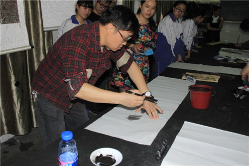 三位专家参观了学校的模块教室,并泼墨挥毫,当场书画。令师生们佩服之至。