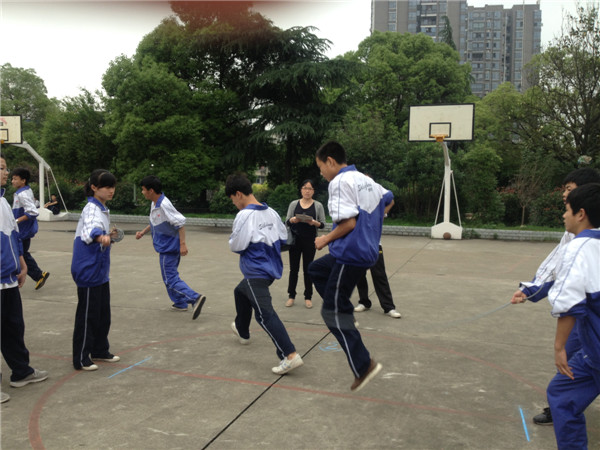 这次跳绳比赛项目为全体3分钟跳长绳,全级部13个班级,六百余名学生参与角逐。