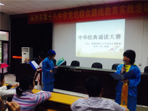 为进一步传承中华民族博大精深的优秀文化,丰富校园文化生活,营造积极向上、健康文明的经典文化氛围,促进学校全方位发展。 5月16日下午,由我校语文教研组主办、高一级部承办的“中华经典诵读大赛”在多媒体教室隆重举行。