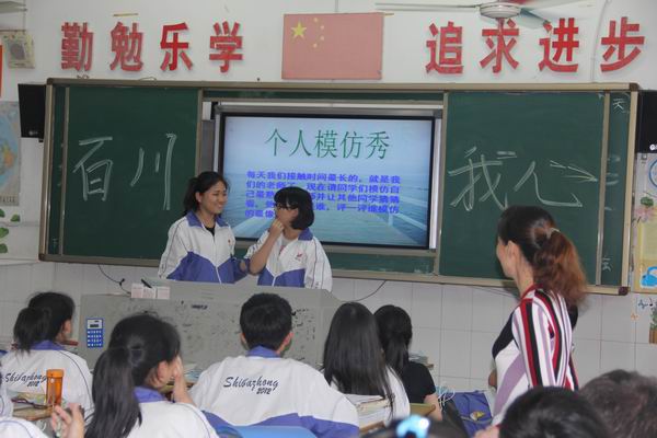 5月23日下午4点,个人模仿秀正在市十八中272班趣味上演。还未进教室,便听到欢笑声一片。只见一个女生笑呵呵的走上讲台,手指前方,对着下面的同学说了一句话,引得哄堂大笑,大家异口同声说出了被模仿的人。也有两人搭档,进行哑剧表演的,大家目不转睛,注意着表演者神态,动作,使劲儿回想这会是谁呢!各科老师们也中枪,政治老师常说的话,语文老师独特的嗓音,地理老师标准的动作,都被搬上了讲台。