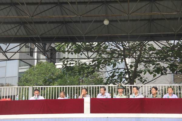 会操仪式在田径场举行,由学校工会彭泽波主席全程主持。庄严的升旗仪式结束后,李国柱校长,市武警支队上尉警官周思恩,党委杨电波书记来到田径场,从队列前一一走过,对600多名新生进行检阅。