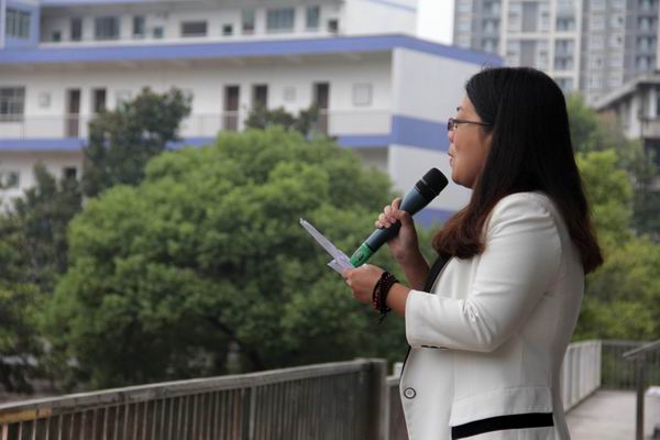 接着,市首届教坛新秀,我校优秀青年教师安瑛老师登上主席台,朗诵献给祖国母亲的诗歌,时而慷慨激昂,时而深情款款,时而柔声细语,时而铿锵洪亮。同学们的爱国主义情感此刻在升华,与祖国母亲的心此刻贴的更紧,这一刻,祖国母亲的兴衰荣辱,梦想希望都在我们心中。这是一堂多么精彩的语文课,这是一次多么高质量的爱国主义教育课,它没有说教,没有灌输,有的是诗歌的享受,情感的唤醒,生命的震撼,灵魂的指引。国旗下,我们能有这样的时刻真好!