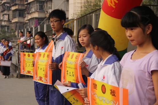 获得优秀方阵奖的班级有:高一鲜花方阵、高二彩旗方阵、281班、283班、284班、285班、291班、1406班、1409班、高三美院班
