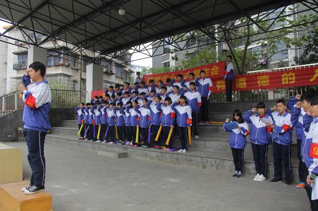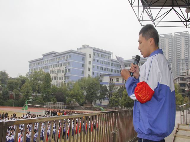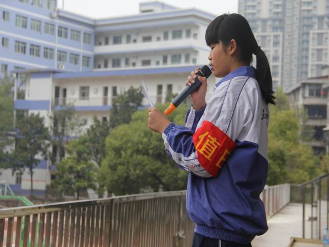 平时在学校的各项常规活动和大型活动中都能看到他们的身影,他们有时严格严肃,有时细心细致,有时温和友善。每周一早晨,是他们最早在校门口欢迎大家的到来;每天的早、晚自习、就餐、眼保健操等等是他们在旁督促提醒;每天的德育十五分钟、每周周会、主题班会等等是他们在进行评比检查、、、还记得校运动会上,是他们轮流值班,分成各个小组,或维持着秩序,或组织加油呐喊,或护送受伤的同学,最后又是他们留下来再次维护操场的干净整洁。