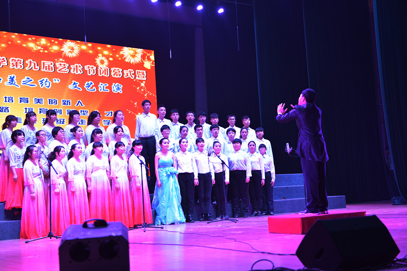 首先由李国柱校长为此次活动致词。李校长满怀激情地从教学、德育、美育几方面回顾了本校在2014年各项工作中取得的骄人成绩,并对即将到来的2015年作出了新的展望。随后,随着1413班歌声,文艺汇演第一板块“和美之声”合唱比赛正式拉开帷幕。《国家》、《众人划桨开大船》、《拥军花鼓》等观众耳熟能详的歌曲想起,合唱的班级动作整齐划一、声音洪亮有气势,表演过程中更是将班级特色与歌曲结合起来,给予了观众耳目一新之感。