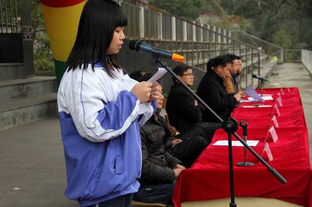 高二级部德育副级部长匡金鹏老师代表教师发言,“以十八中教师为荣”,是他的自豪、自信与承诺。匡老师是五一劳动奖章获得者,市教坛新秀。别看他年纪轻轻,教育思想和智慧频频展现,在学生面前挺有威严,学生也乐于听他“训话”,让学生又敬又爱。高三273班黄莹代表全体学生发言。她多次荣获学校三好标兵称号,她的讲话温柔而坚定,简练而清晰,一字一句,诠释着她的青春理想,昭示着她的执着行动,鼓舞着全体同学。