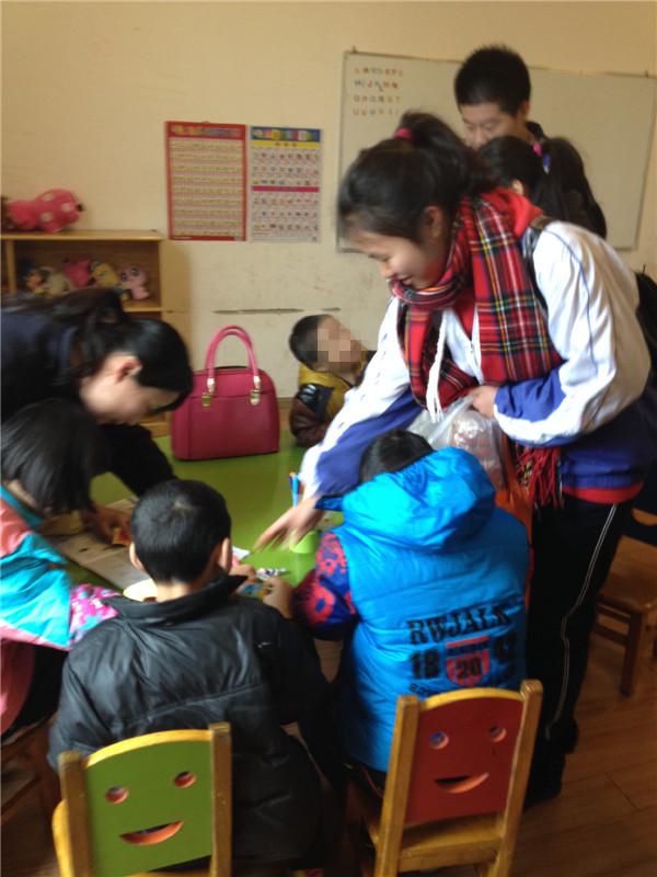 率先走进福利院的是280班和283班的学生代表,他们带着同学们精心准备的文具、书籍、食品和衣物等来到福利院,送出自己的一份爱心。