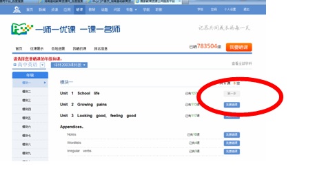 4、选择学科、教材版本,章节内容等