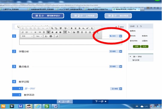 其它的学情分析、重点难点方法一样,记得分别点“保存”。
