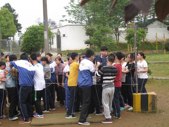 25日,小雨转多云。这是同学们在罗家坪社会实践基地的第二天。A组同学首先进行的实践项目是—拓展训练。其中包括三个拓展训练项目:胜利墙、风雨人生路和生死电网。